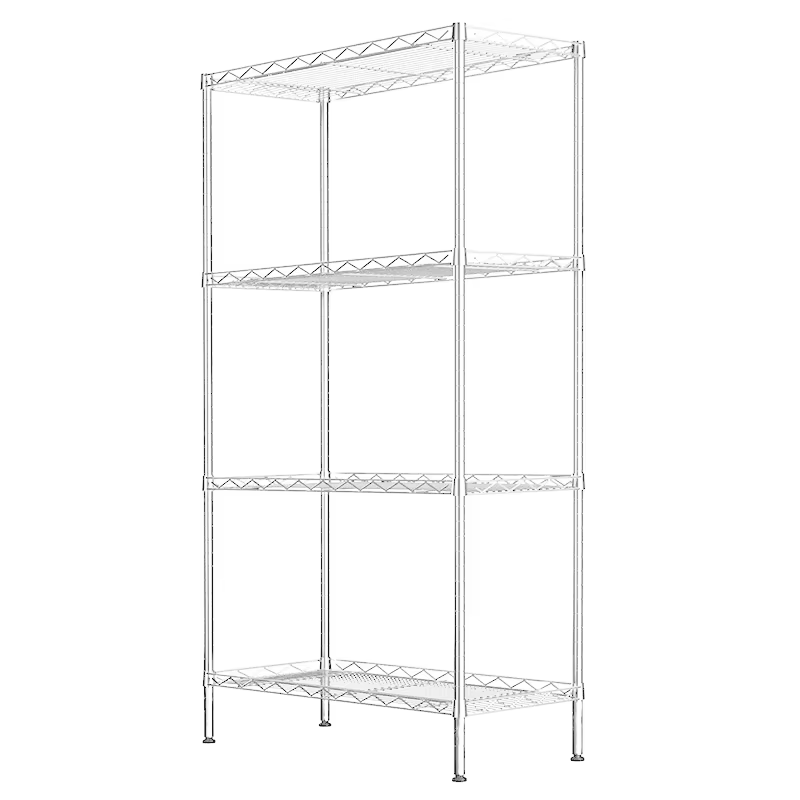 Anti-rust White Mesh Storage Rack 4-Tier Adjustable Height - Eco-friendly for Kitchen Pantry/Laundry Room
