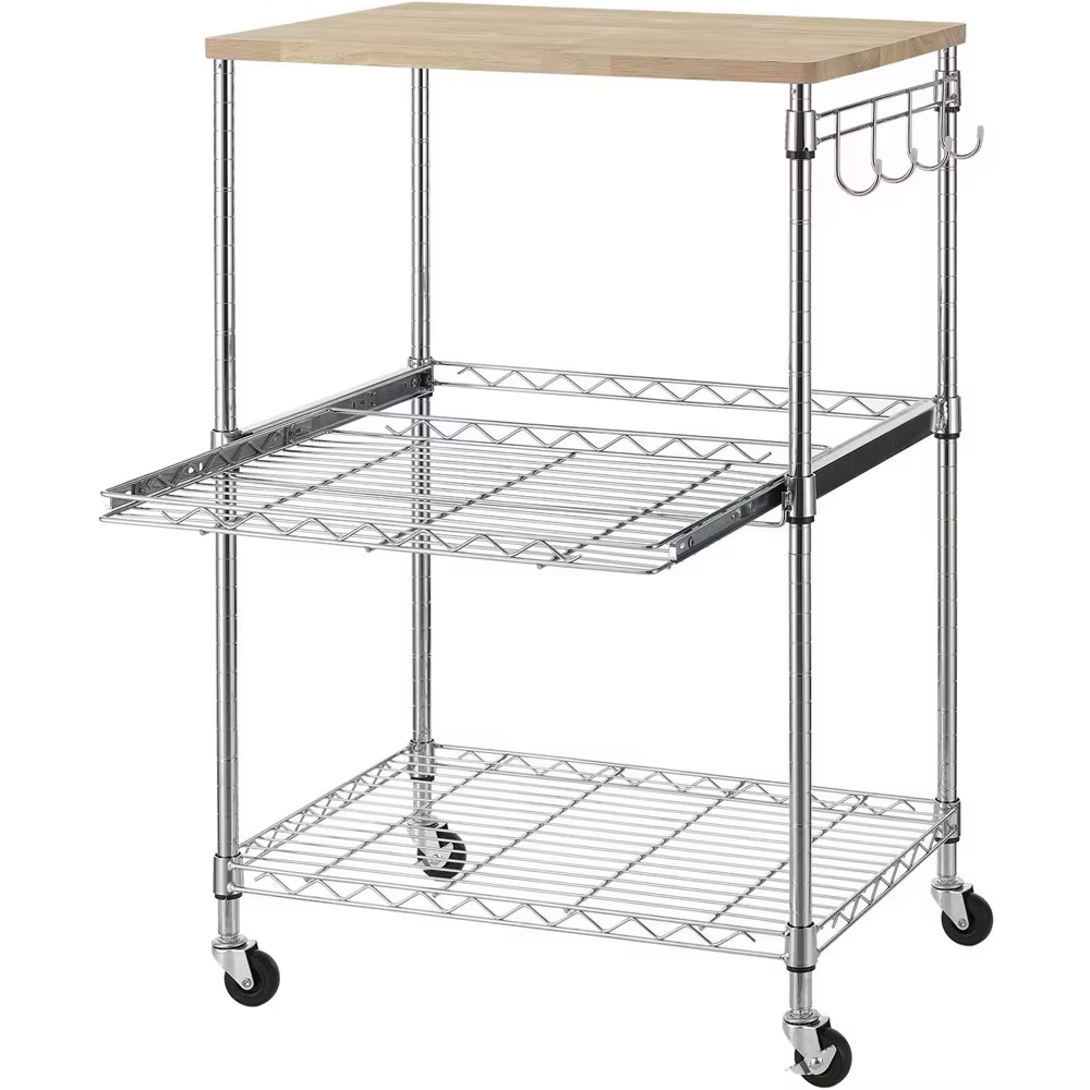 Commercial Grade Heavy Duty Utility Cart 990Lbs Capacity 3 Tier Wire Rolling Cart With Wheels Metal Service Carts With