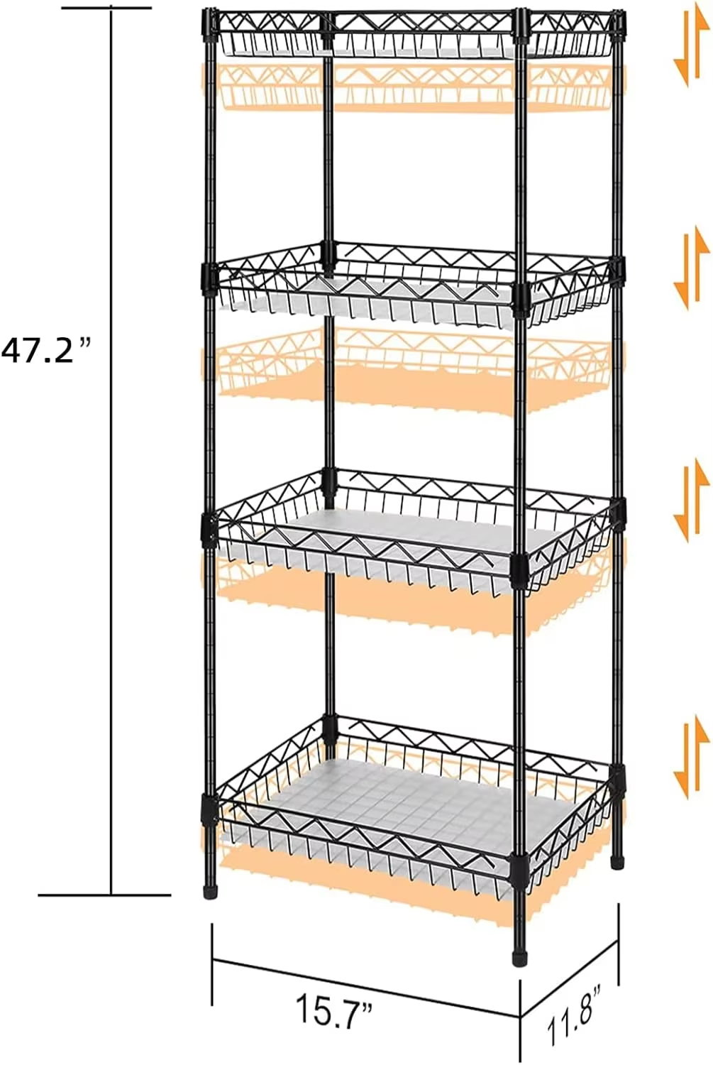 NSF-Certified 4-Tier Cable Management Rack 24x18x48in Modular Heavy-Duty Storage System for Commercial Kitchen & Wire Shelf