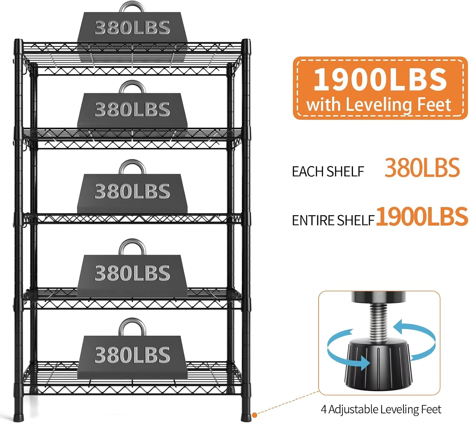 Industrial 5-Tier Metal Shelving Unit 36x14x72in Heavy-Duty Adjustable Mesh Rack for Commercial Kitchen Storage & Metal Shelving