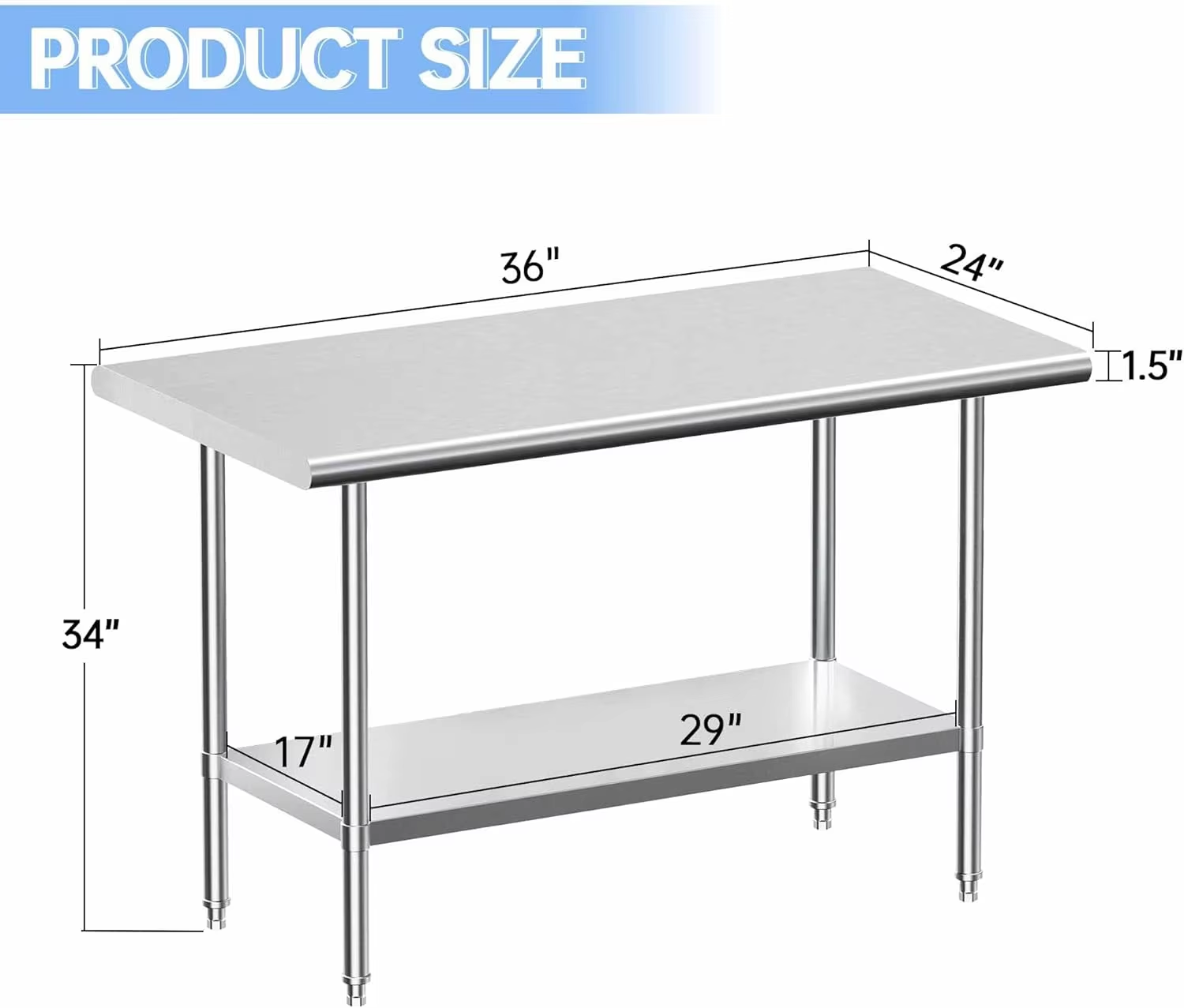 Heavy-duty Adjustable Stainless Steel Workbench - Commercial Double-layer Storage Rack for Kitchen Restaurant Workshop Wire Rack
