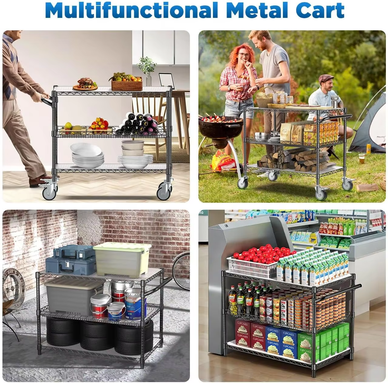 Black Heavy-duty Utility Line Rack 3-layer Stainless Steel Kitchen Shelf Approved by NSF Suitable for Garage Kitchens Wire Rack
