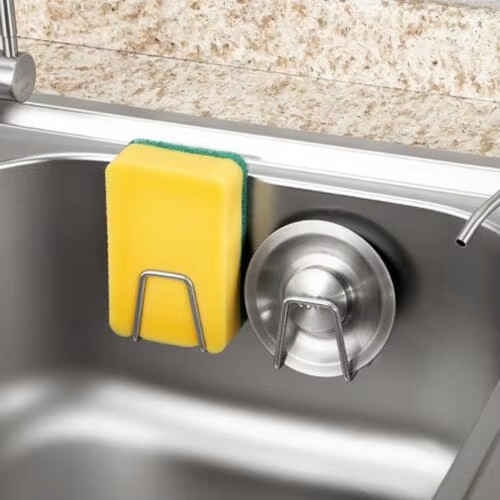 Chrome Plated Stainless Steel Kitchen Sink Sponge Rack Self-adhesive Design Steel Structure Used for Drying and Drainage