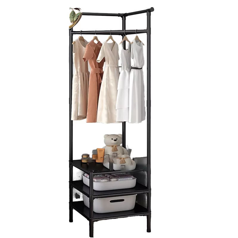 Customizable OEM Metal Floor Standing Clothes and Hat Rack with 3 Layers of High Adjustable Clothing and Hat Rack with Shelves
