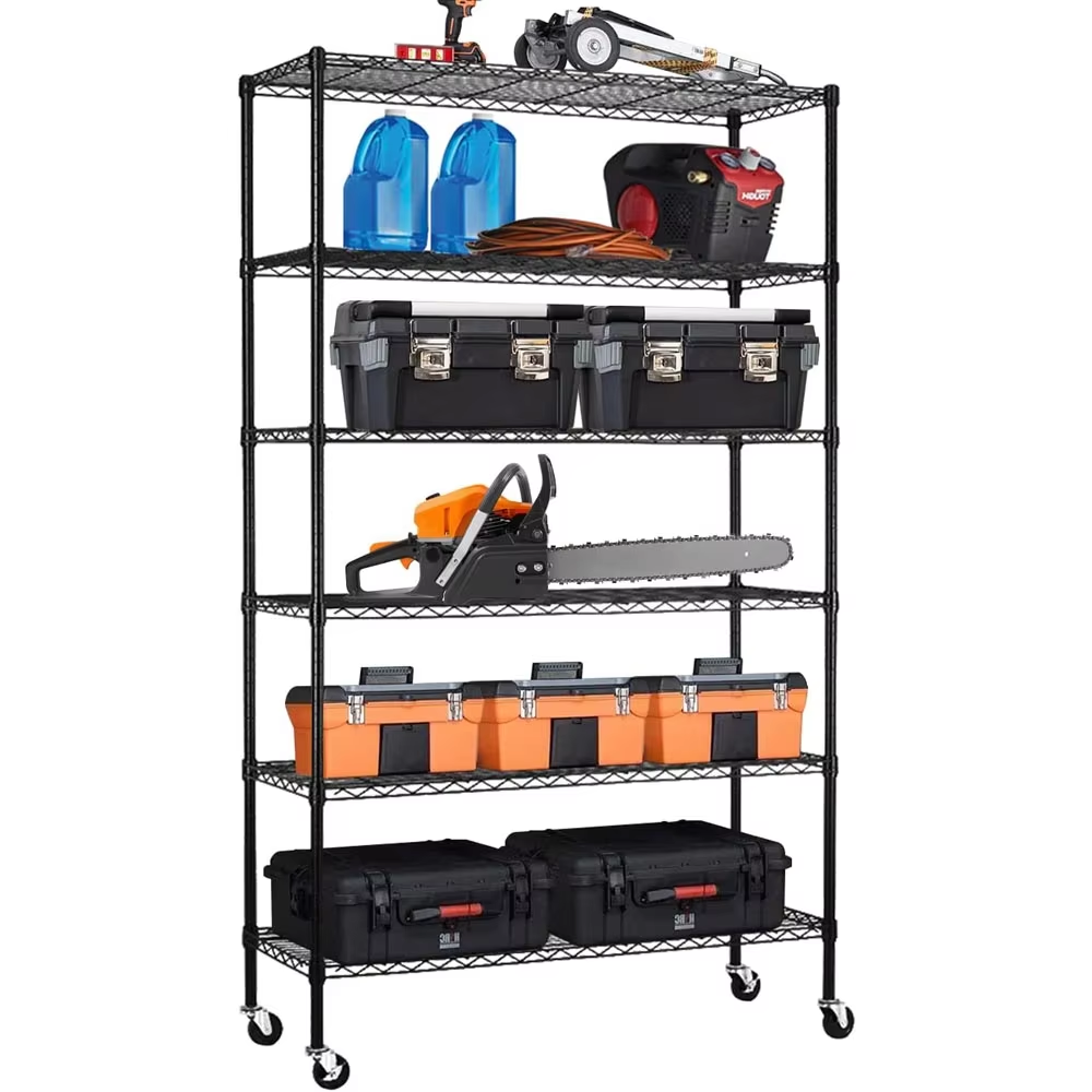 Heavy-Duty 6-Tier Stainless Steel 304 Medical Rolling Wire Rack with Lockable Casters & Adjustable Shelves