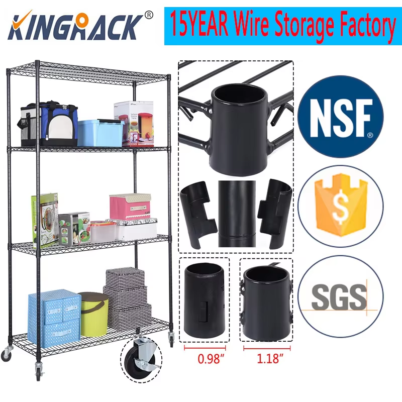 Heavy Duty Five Layer Chrome Plated Steel Wire Rack with Brake Wheels Suitable for Office Storage and Organization