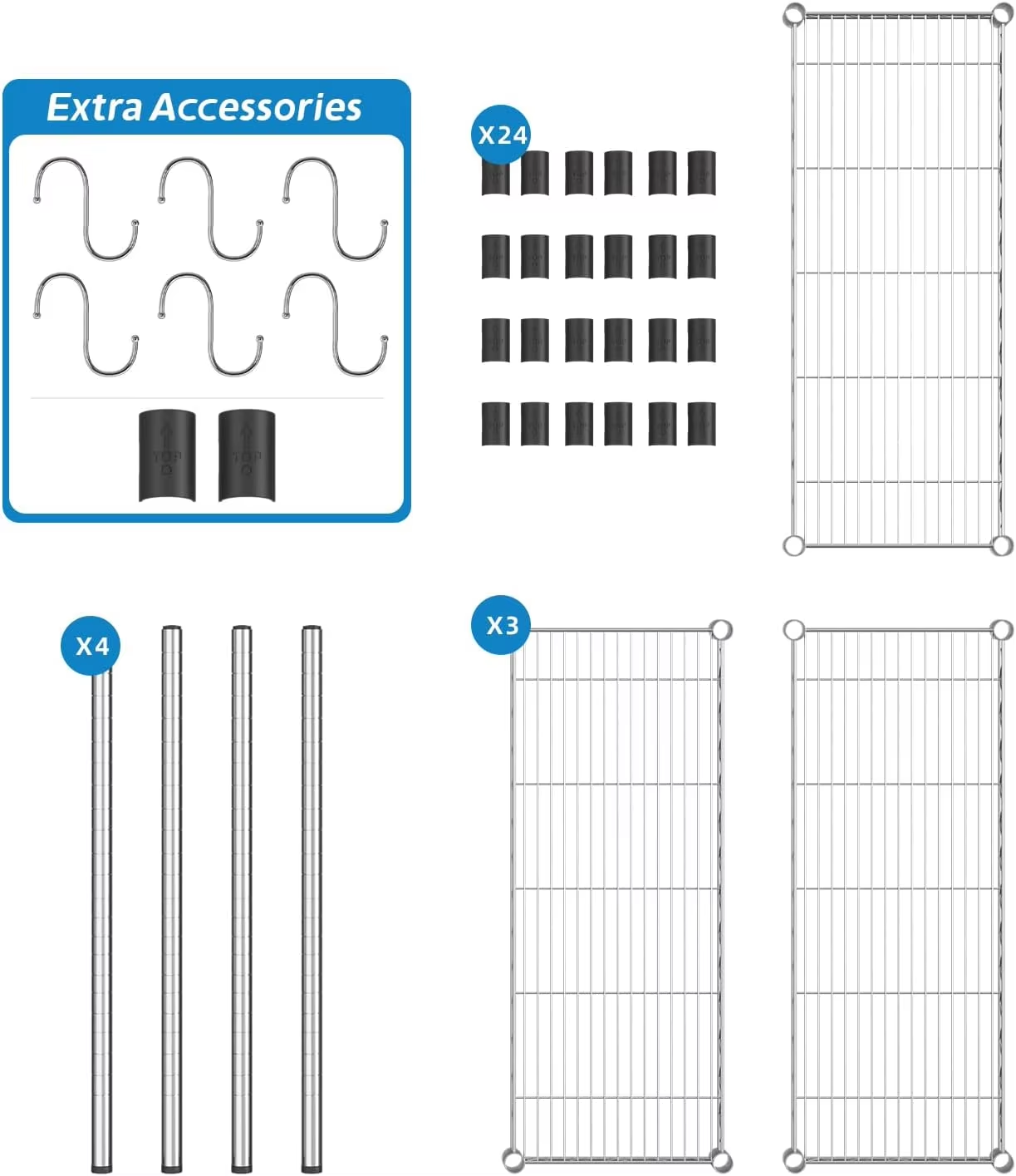 Heavy Duty NSF Certified 304 Stainless Steel 3-Tier Wire Rack Durable Rust-Resistant Metal Storage for Restaurant Wire Shelf