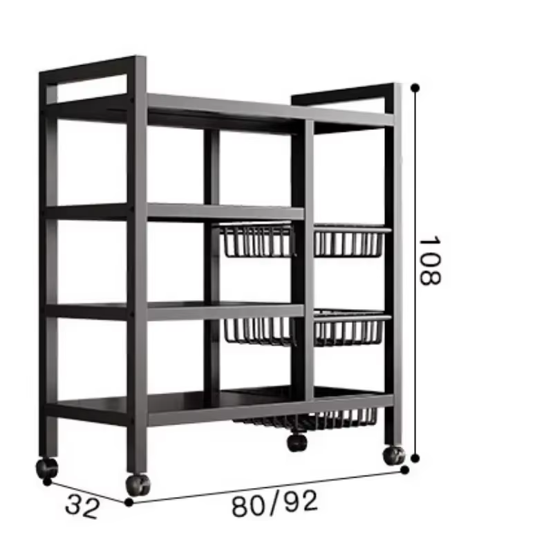 Heavy-Duty Stainless Steel Adjustable Kitchen Storage Rack Multi-Purpose Kitchen Storage Rack Trolley with Casters for Pantry