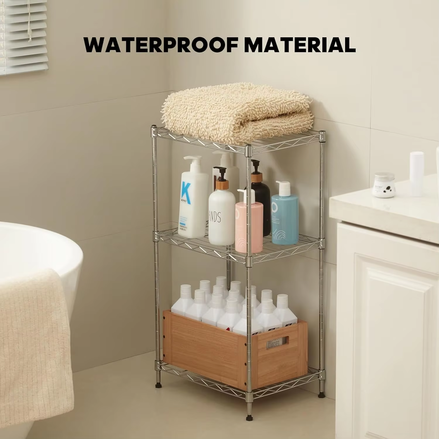 A White 3 - Tier Metal - Wire Storage Rack Adjustable & Chrome - Plated Ideal for Kitchen Bedroom Living Room Wire Shelving